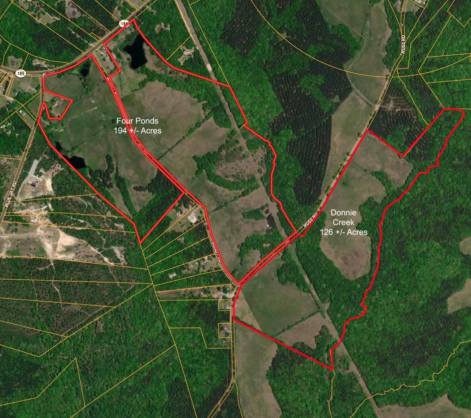 Across Ross Road is Donnie Creek, a 126-acre parcel also available.